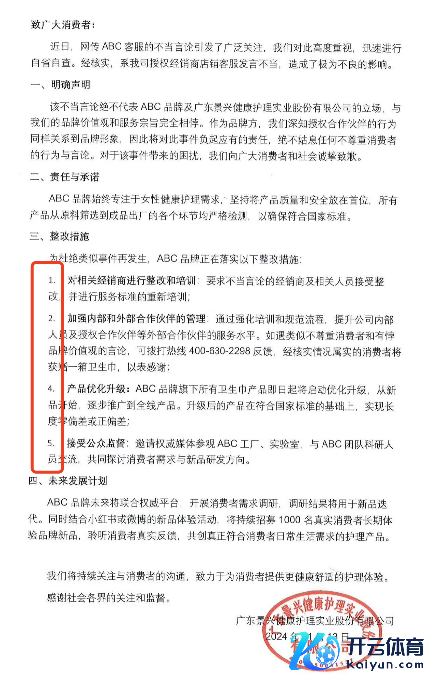 回复毅力被截图公之世人,11月13日,ABC官方微博只得下场说念歉和评释,称这是授权经销商店铺客服发言欠妥,言论毫不代表 ABC 品牌及广东景兴健康照看实业股份有限公司态度。