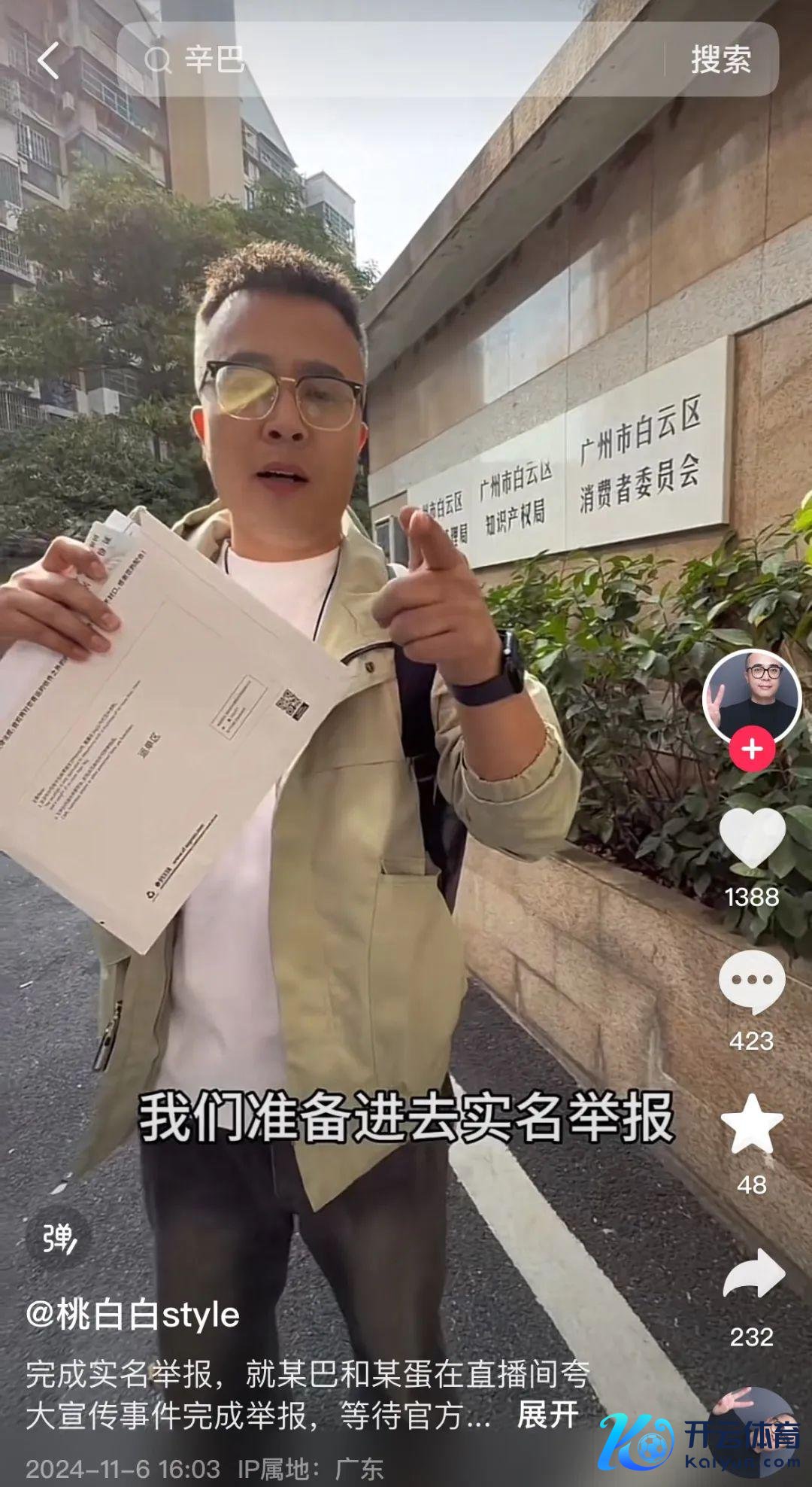 11月6日,“桃白白style”发布视频,视频里他来到了广州市白云区市集监督经管局,暗示还是就辛巴和蛋蛋在直播间夸大宣传事件完成实名举报,将恭候官方的公谈处罚。