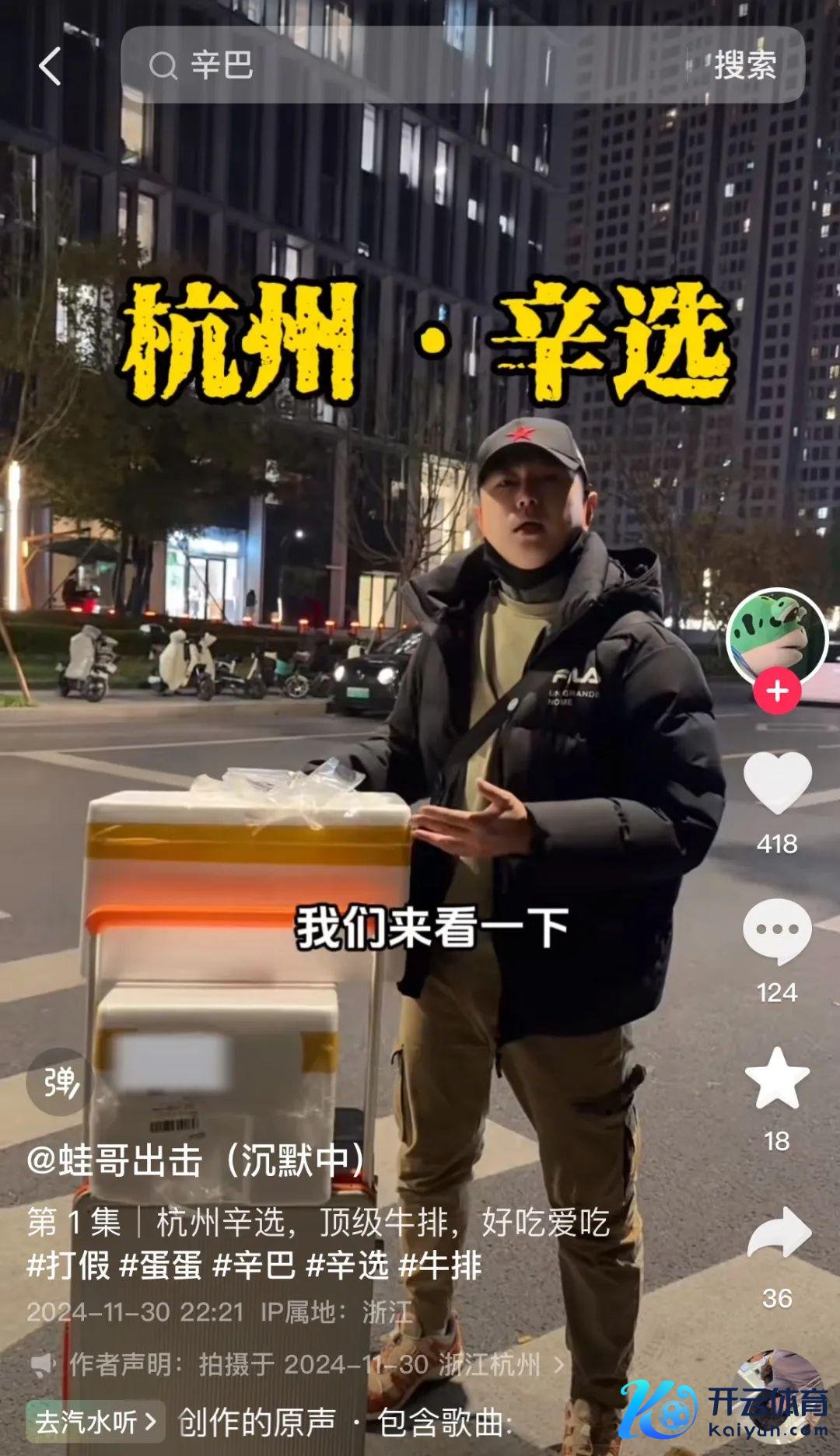 11月3日和12月1日,他连发两条视频,称辛巴大门徒蛋蛋带货的牛排疑似乌有宣传,明明是合成牛排,却宣传无合成无拼接。