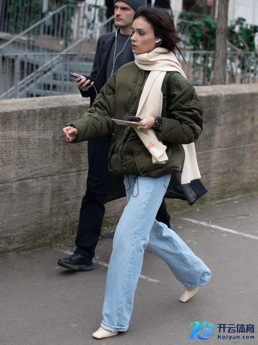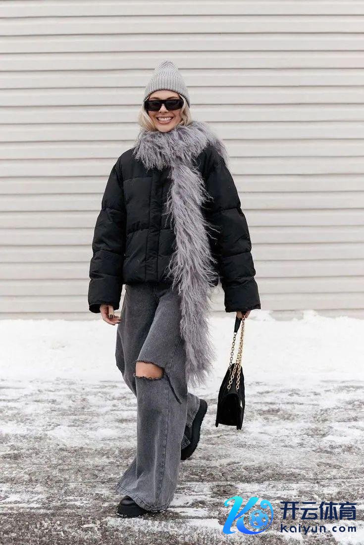 好比选一条与羽绒服造成对比色的领巾,不错招引视觉焦点,弱化羽绒服的扩张感。