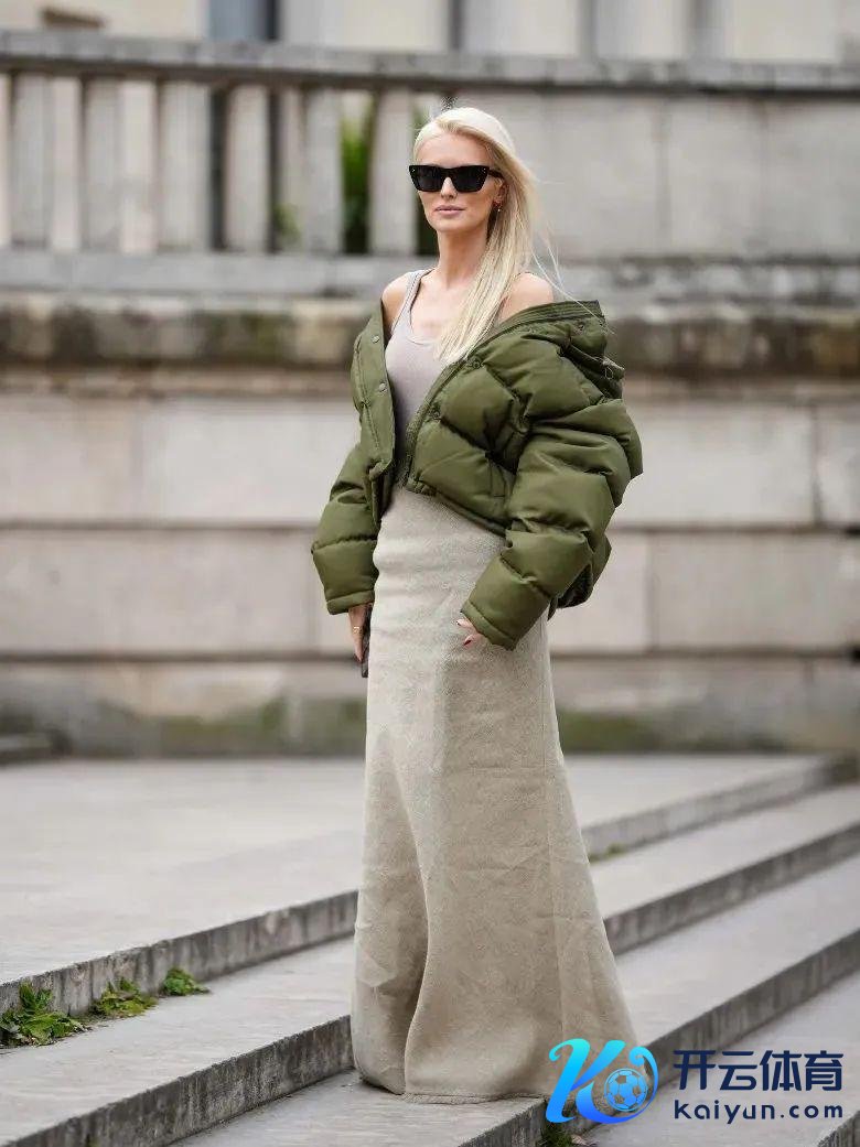 要是聘请长款羽绒服,可搭配略略宽松的阔腿裤或裙装。