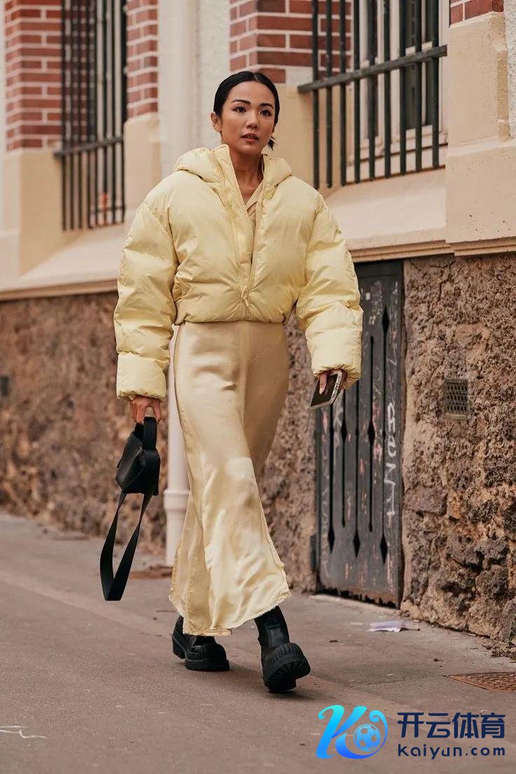 羽绒服本人材质蓬松、廓形宽大,稍不细心就会显得痴肥,况兼无法进行叠穿,因而阑珊端倪感。