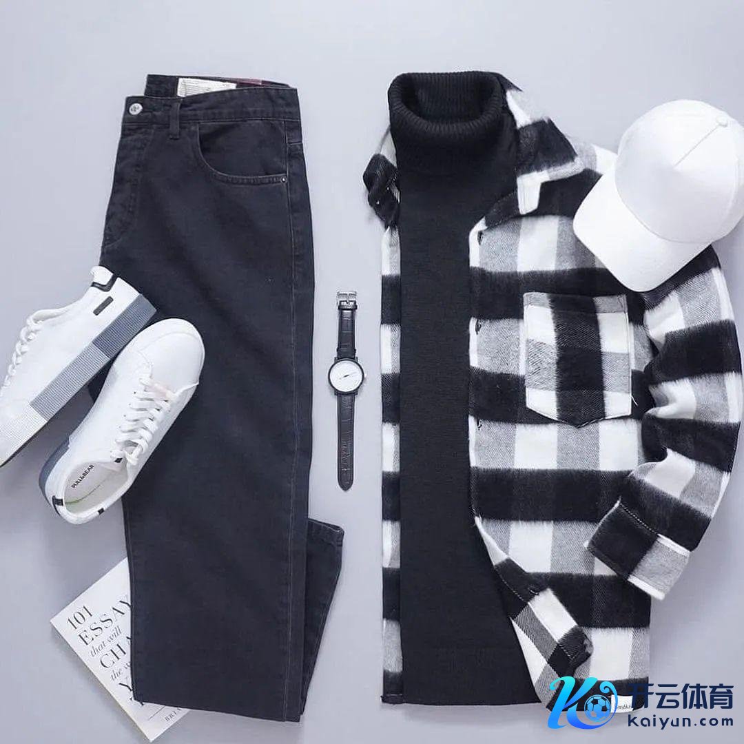 搭配重点:以曲直加绒衬衫为亮点,御寒且敷裕档次感。内搭玄色高领毛衣,增添温存与巧妙气味。玄色恬逸裤与毛衣相衬,强化举座的广泛感。白色板鞋则点亮总共造型,在曲直主调中彰显前锋立场,尽显男生的干练与个性魔力。