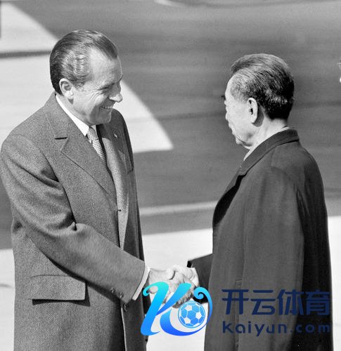 1972年2月21日,周恩来总理和好意思国总统尼克松在机场持手。 新华社