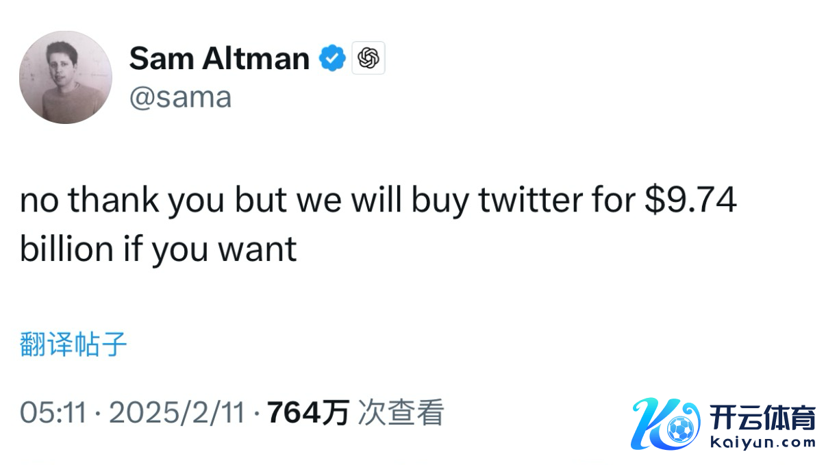 讯息称马斯克团队出价974亿好意思元竞购OpenAIwww.kaiyun.com,奥尔特曼隔空回答讯息称马斯克团队出价974亿好意思元竞购OpenAI,奥尔特曼隔空回答