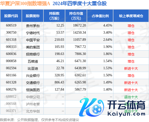 中原沪深300指数增强A为指数型-股票基金,字据最新一期基金季报走漏,该基金钞票确立:股票占净值比93.05%,无债券类钞票,现款占净值比9.53%。基金十大重仓股如下: