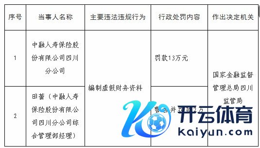 【大河财立方讯息】4月17日,国度金融监督料理总局四川监管局袒露的行政处罚信息公开表默契,中融东谈主寿保障股份有限公司四川分公司因编制很是财务贵寓被罚金13万元。中融东谈主寿四川分公司轮廓料理部司理田蕾被予以申饬并罚金2万元。